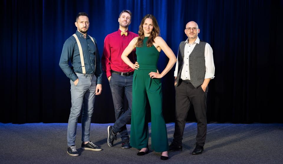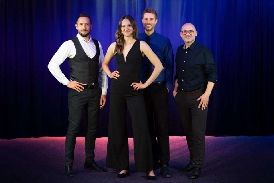 Wir fühlen uns auf der großen Bühne wohl – kommen als Quartett aber auch mit kleineren Bühnen und anspruchsvollen räumlichen Gegebenheiten vor Ort gut klar.