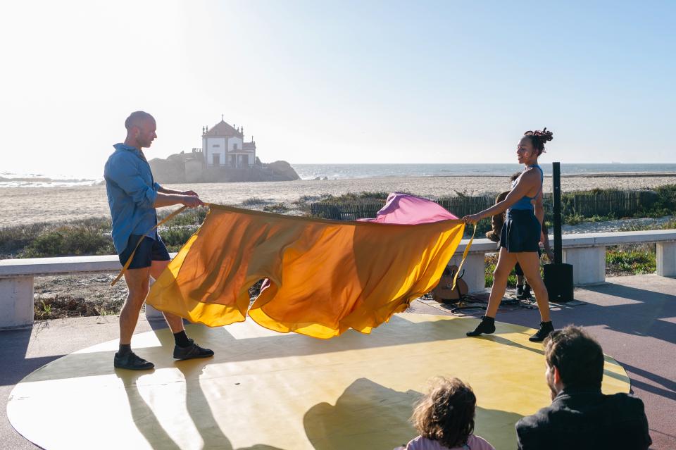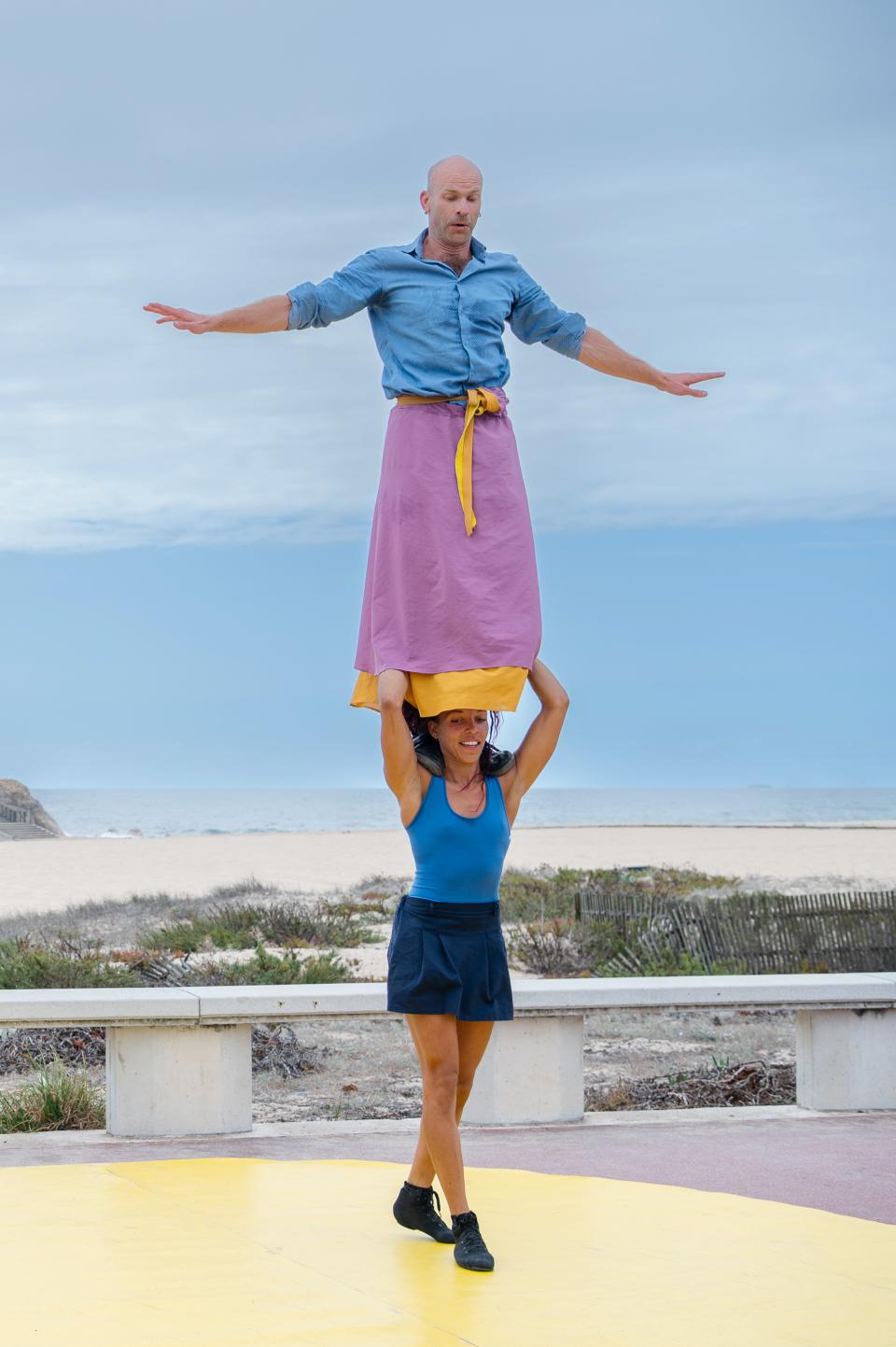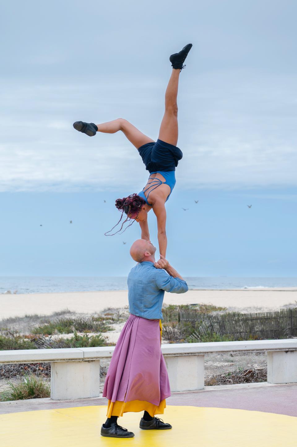 In diesem intimen und poetischen zeitgenössischen Zirkusduett wird ein einziger übergroßer Rock zu einem dritten Akteur auf der Bühne – einer Metapher für eine Beziehung. Während die beiden Akrobat*innen sich durch Hochheben, Balancen und Stürze bewegen, verwandelt sich der Rock: mal ist es ein Schutzraum, eine Falle, ein Spielplatz, eine Last, eine Tanzpartnerin.