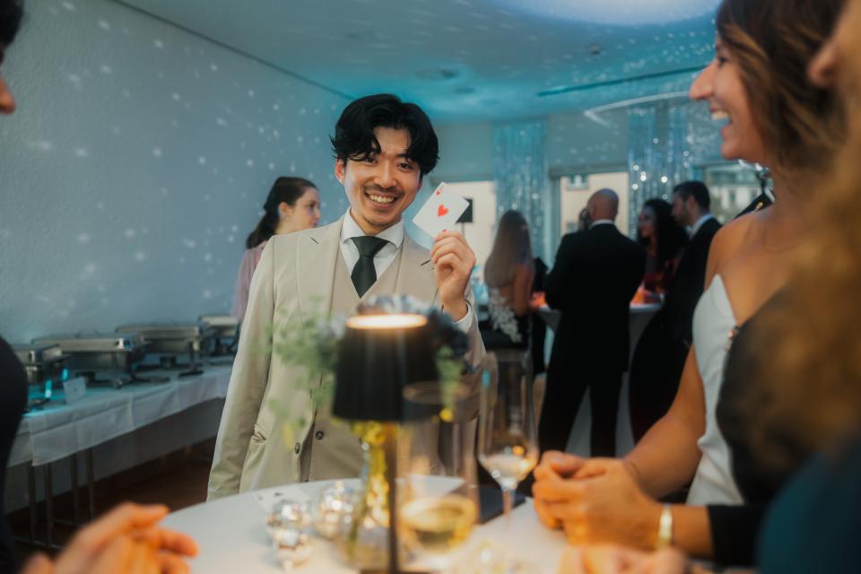 Egal ob Firmenevent, Hochzeit oder private Feier – ich sorge dafür, dass Ihre Veranstaltung zu einem Highlight wird. Mit meiner interaktiven Close-Up-Magie erleben Ihre Gäste die Zauberkunst hautnah, direkt vor ihren Augen. Gleichzeitig bringe ich mit durchdachten Bühnenmomenten und humorvoller Unterhaltung auch große Gruppen zum Staunen.