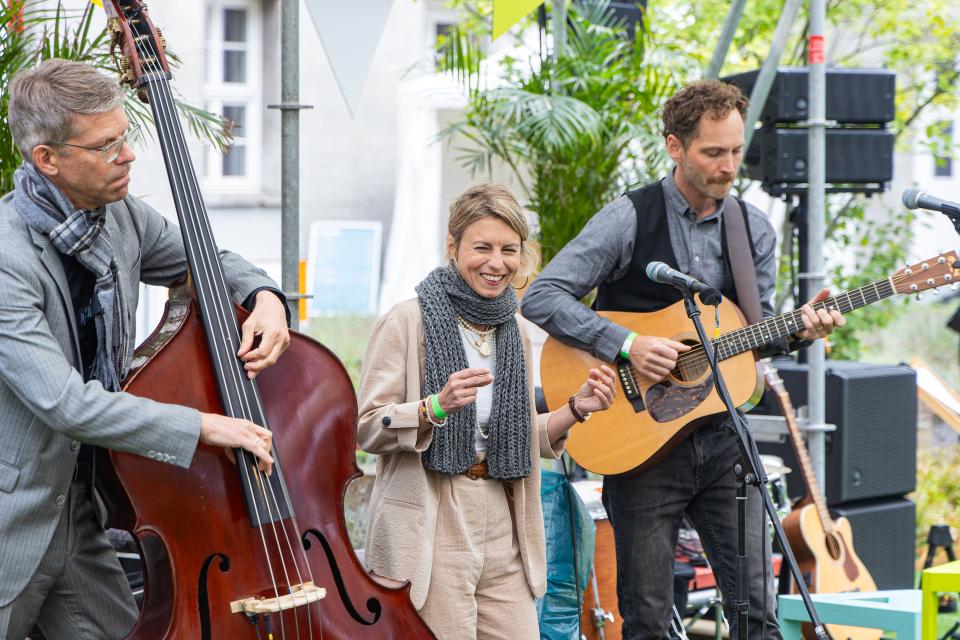Wir spielen übrigens auch draußen, selbst wenn es keine Steckdose gibt. In kleiner Besetzung sind wir mit unseren Akkuverstärkern komplett autark.