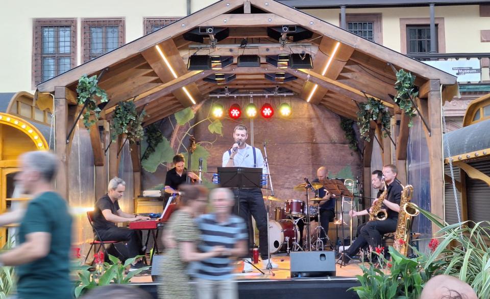 Wir sind eine junge Band aus Leipzig und Borna, die im Swing, Soul, Jazz und Pop zuhause ist. Mit der Soul-Stimme unserer Front-Frau, klassischer Jazz-Stilistik (Kontrabass, Drums, E-Piano) und fetten Soli von Sax, Posaune und Violine covern wir nicht nur Songs von Ella Fitzgerald bis Amy Winehouse, sondern machen auch vor Billie Eilish, Metallica und Macklemore nicht halt. Ob Tanzbar oder Besinnlich- mit uns wird eure Hochzeit, Firmenfeier, Tanzabend oder Open-Air-Party garantiert unvergesslich. Dabei gehen wir nach vorheriger Absprache gerne auch auf eure eigenen Liedwünsche ein.