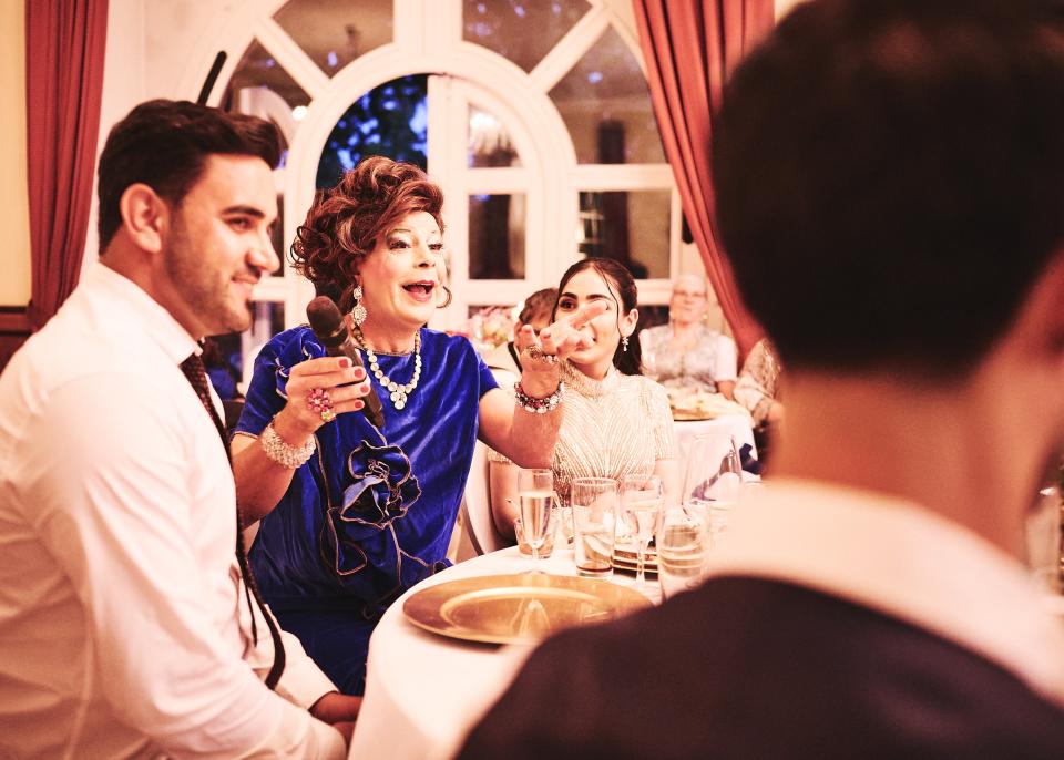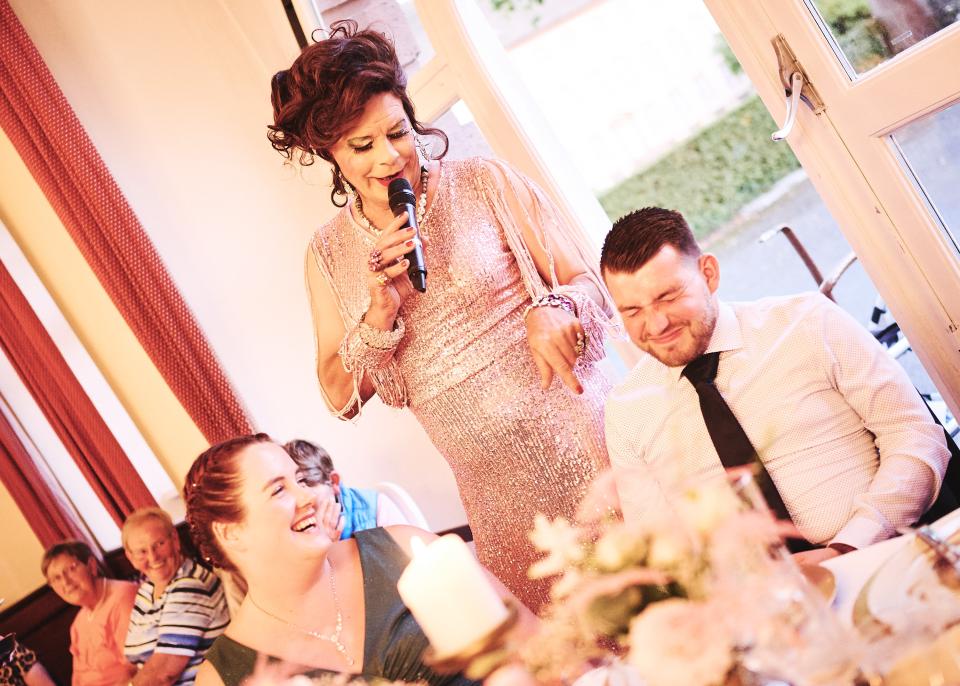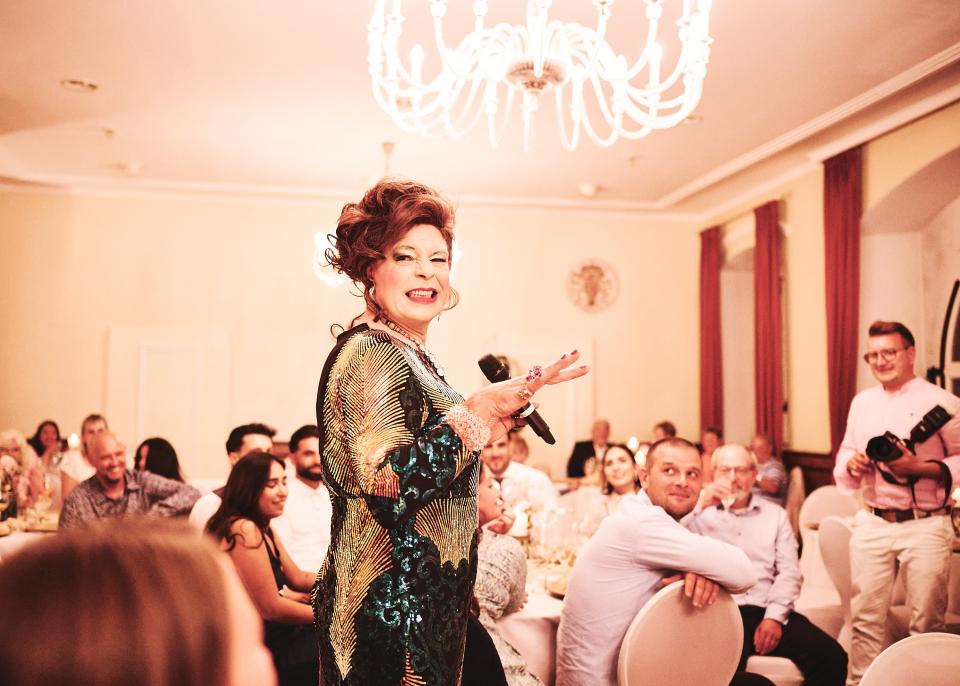 Das Theater Liebreiz macht seinem Namen alle Ehre, wenn es die außerordentlich liebenswürdige wie reizende Hertha Ottilie von Amsterdam auf die Bühne schickt. Wer sich als Gastgeber ein Schmunzeln und Lachen bei den Gästen sichern will, ist bei Hertha an der ganz richtigen Adresse. Sie macht aus einem normalerweise spröden Ereignis, ein Event mit Glanz- und Höhepunkten. Nicht ganz modisch gekleidet, aber außerordentlich attraktiv, zieht die charismatische Moderatorin die Gäste in ihren Bann. Und diejenigen, denen witzige Gespräche, Interviews und Kommentare nicht ausreichen, werden noch von den Gesangskünsten der Dame aus Holland verwöhnt. Bekannte Chansons präsentiert sie gekonnt und sicher und führt das Publikum von Höhepunkt zu Höhepunkt. Rundum eine gelungene Veranstaltung.