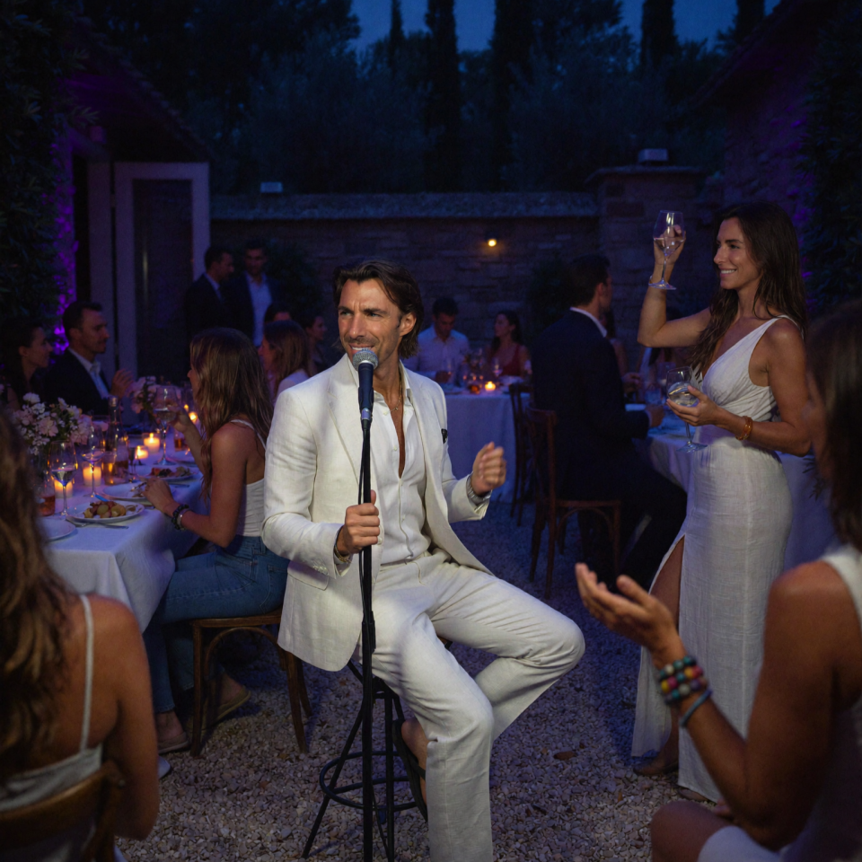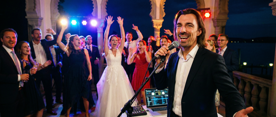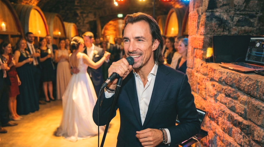 Ob exklusive Hochzeit oder besonderer Geburtstag – der Fokus liegt voll auf meiner stimmlichen Performance. Vom Sektempfang über das Dinner bis hin zur anschließenden Party steuere ich über mein professionelles Setup parallel die musikalische Architektur für Ihre Feier. Ich setze nahtlose Übergänge (Crossfades), sodass keine musikalischen Löcher auf der Tanzfläche entstehen. Bei speziellen Publikumswünschen, die nicht zu meinem Live-Repertoire gehören, spiele ich die Original-Songs fließend ab. So verschmilzt die Energie einer echten Live-Performance mit der musikalischen Flexibilität eines durchgehenden Ablaufs zu einem Erlebnis aus einem Guss.