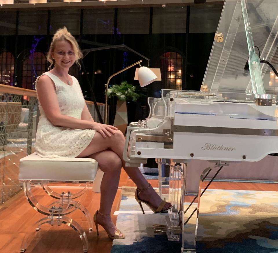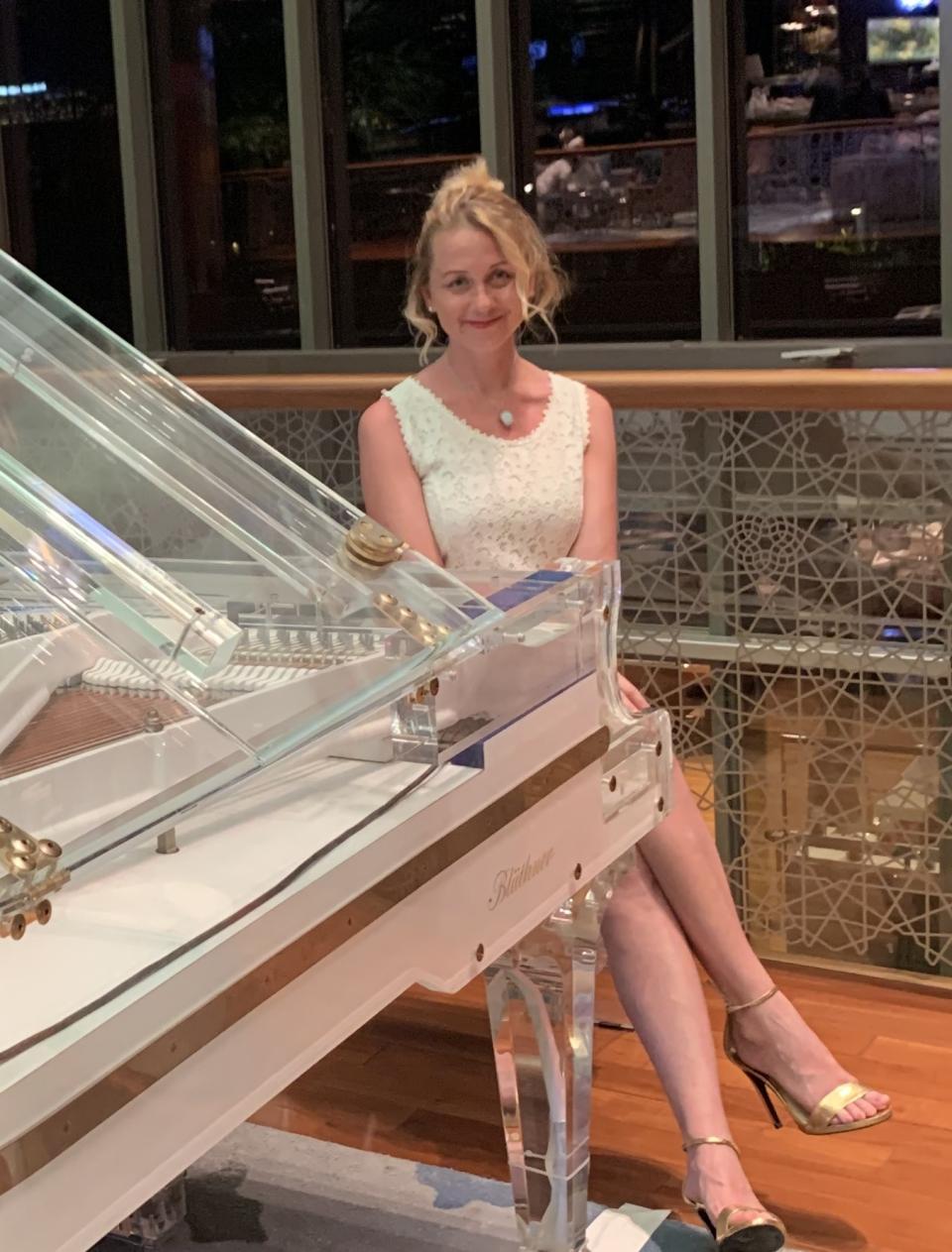 Die Pianistin spielt ausgewaehlte elegante Musik bei stilvollen Veranstaltungen.