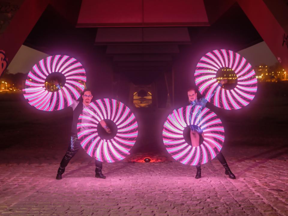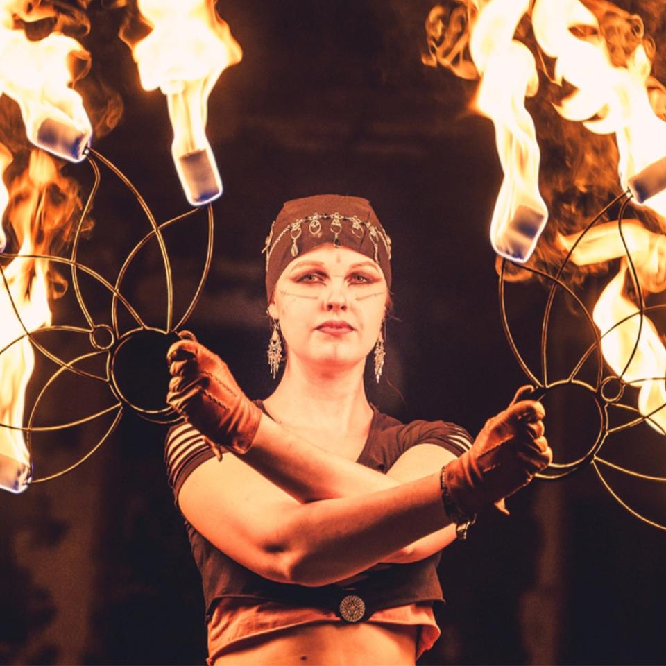 Mit einer Leidenschaft für das Spiel mit den Elementen und über 10 Jahren Erfahrung kombinieren wir Feuerjonglage, dynamischen Tanz und modernste Lichttechnik zu einer harmonischen Einheit.