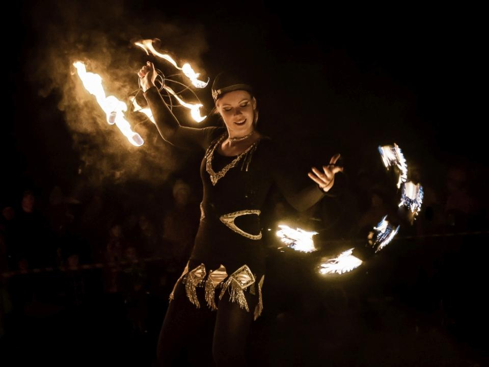 Eine Kombination aus Tanz, Feuerartistik und sprühenden Funken-Effekten.