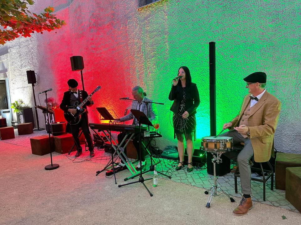 Hallo Ihr Fünf, wir beginnen gerne mit dem Feedback unserer Gäste: Die Musik war erstklassik! Da können wir Gastgeber uns nur anschließen, vom Sektempfang bis in die Nacht hinein hat uns eure Musik sehr gut gefallen. Eine klare Empfehlung an alle Unentschlossenen da draußen, das Niveau ist bei euch schon sehr hoch. Top! Eventuell haben wir Glück und nochmal die Gelegenheit euch auf einer anderen Feier zu hören 😉 Liebe Grüße Janine & Flo