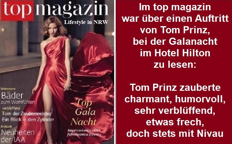 Mit ZauberZauber - Revue der Wunder gastierte Tom Prinz in mehreren deutschen Städten (darunter drei Wochen ausverkauft im Theater des Westens, sowie Alte Oper Frankfurt / Main) und und und und und