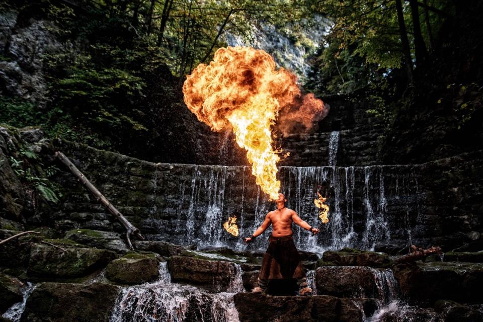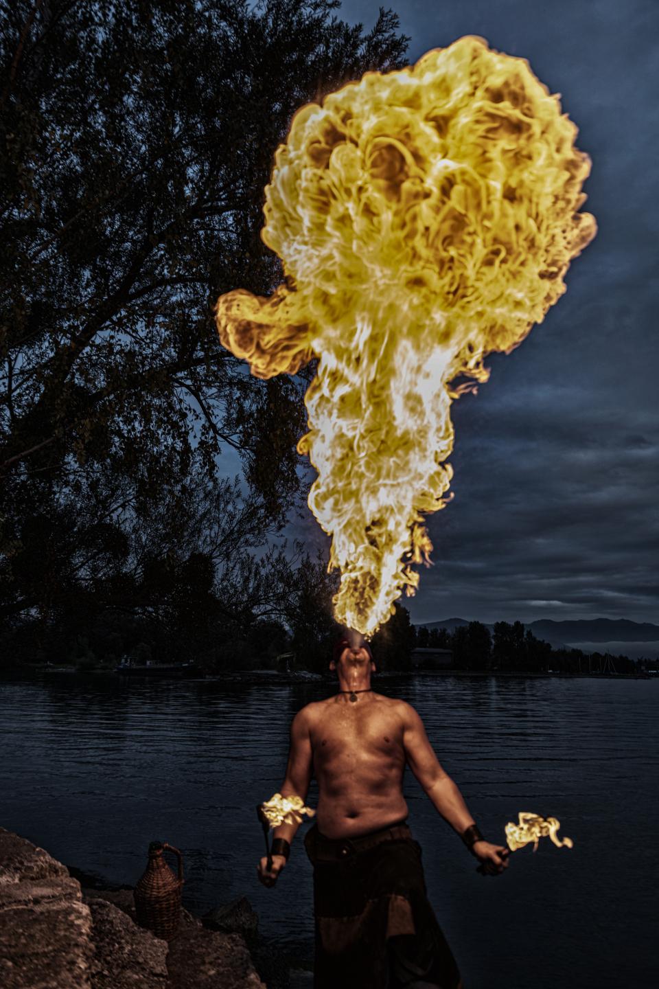 Tauchen Sie ein in das mystisch heiße Element Feuer und lassen Sie sich von einem außergewöhnlichen Feuerkünstler verführen zu einer Zeitreise in die pure, ursprüngliche Feuerkunst. Erleben Sie Feuerschlucken und Feuerspucken in höchster Perfektion und werden Sie auch selbst Teil dieser besonderen Feuerperformance, welche das Publikum direkt in die Darbietung miteinbezieht.