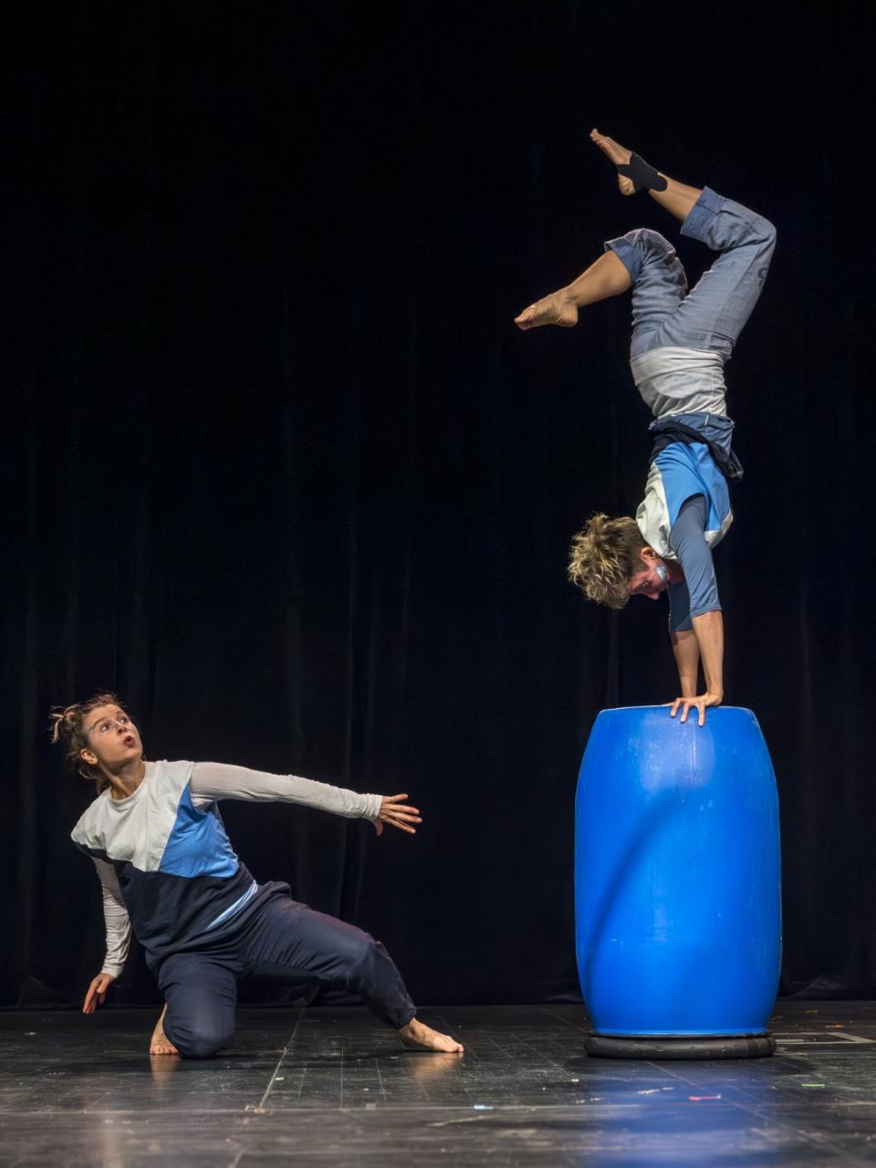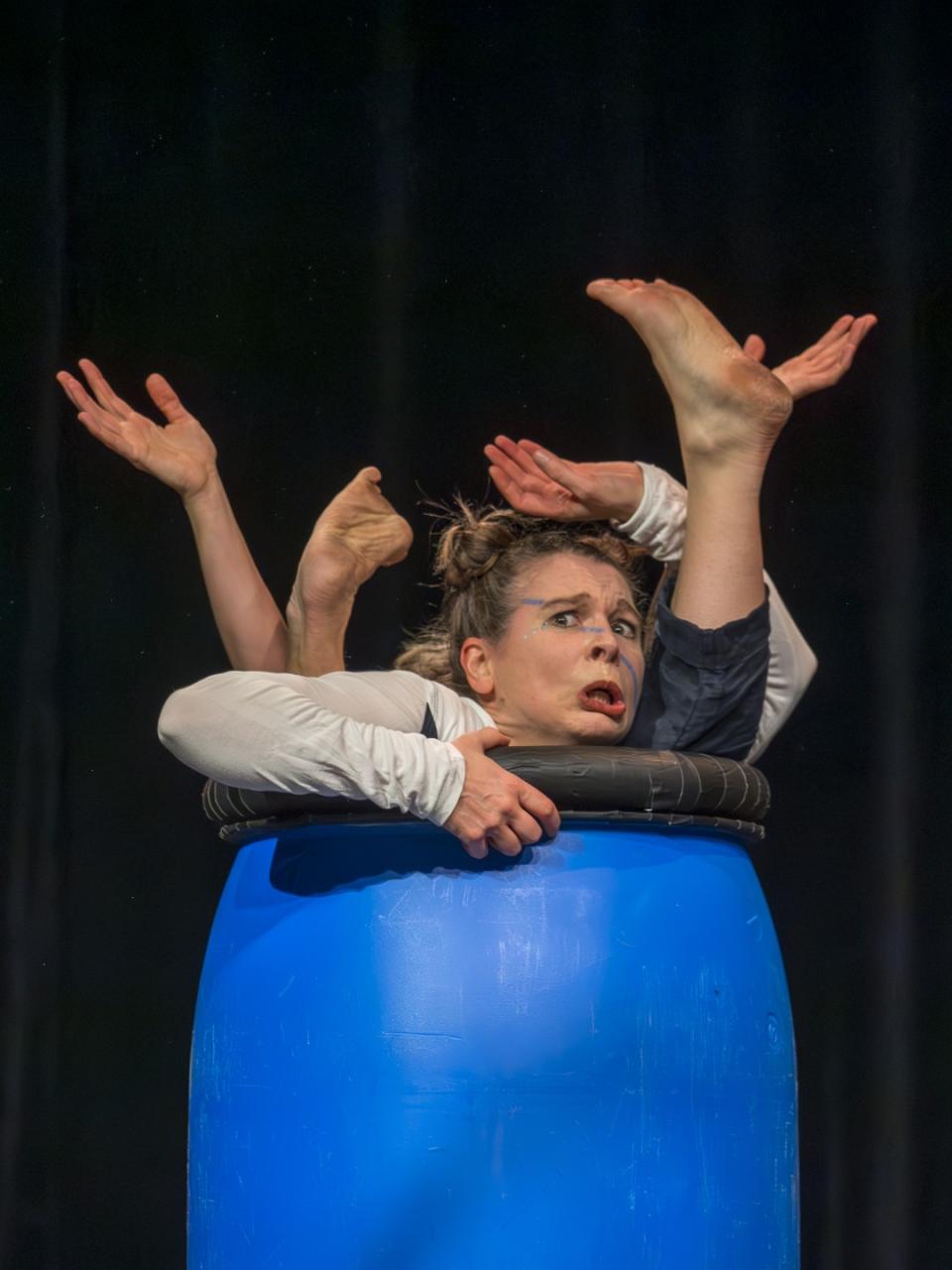 Das Publikum erlebt einen akrobatischen Kampf auf, über, in und vor allem um eine Tonne.