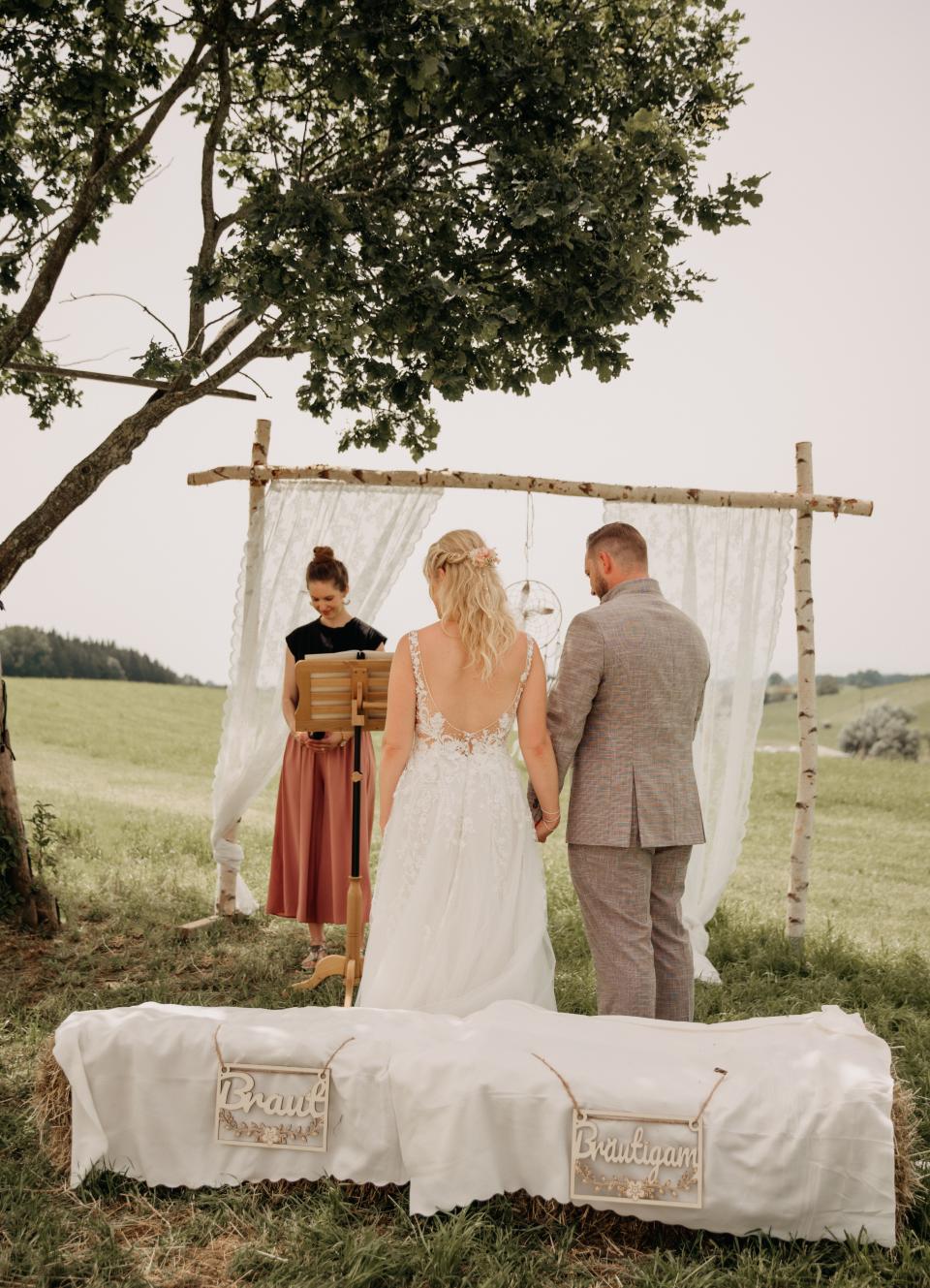 Tanja ist nicht nur eine sehr liebe Freundin, sondern auch eine ausgesprochen talentierte Traurednerin. Wir waren also nicht umsonst überglücklich, als sie auch uns zusagte unsere Trauung zu begleiten. Tanja hat sich sehr viel Zeit genommen auf unsere Bedürfnisse einzugehen. Wir heirateten im Sommer 2020, was Corona-bedingt zu häufigen Wechseln im Ablauf führte, Tanja war uns in der gesamten Zeit eine geduldige und kompetente Ansprechpartnerin. Sogar bei uns nahm sie sich nochmal in einem Treffen die Zeit genau unsere „Liebesgeschichte“ von Beginn bis zur Verlobung kennen zu lernen und auch genau zu erfahren, was uns in unserer Beziehung besonders verbindet. Am großen Tag selbst waren wir mehr als begeistert. Mit ihrer liebevollen, humorvollen und offenen Art hatte Tanja im Nu die Herzen der ganzen Hochzeitgesellschaft erobert. Die Traurede war wunderschön, persönlich, rührend und lustig. Noch heute schwärmen alle unsere Gäste und natürlich wir von unserer Trauung und würden jederzeit immer wieder alles genau so machen. Vielen Dank, dass du unseren Tag noch unvergesslicher gemacht hast, als er ohnehin schon war.