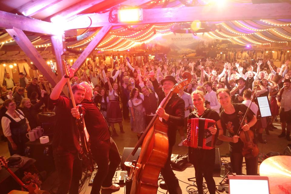 Im Programm hat die Band bairische Landler und Polkas, osteuropäische Klezmer- und Balkantänze, irische Jigs und Reels. Dazu gesellen sich italienische Partisanenlieder, Irish Drinking Songs, russische, traditionelle Volkslieder und bairische Revolutionsgstanzl.