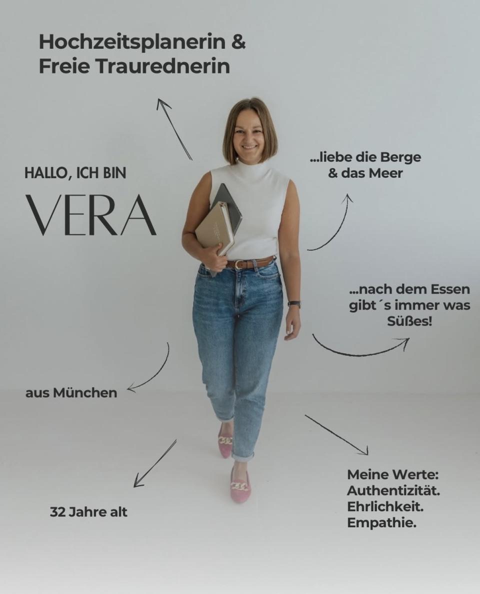 Ausgebildet als freie Traurednerin, Wedding Planerin & Designerin sowie einer zusätzlichen systemischen Coaching-Ausbildung im Gepäck. Sie hilft mir, die richtigen Fragen zu stellen und eure Geschichte wirklich in der Tiefe zu verstehen.