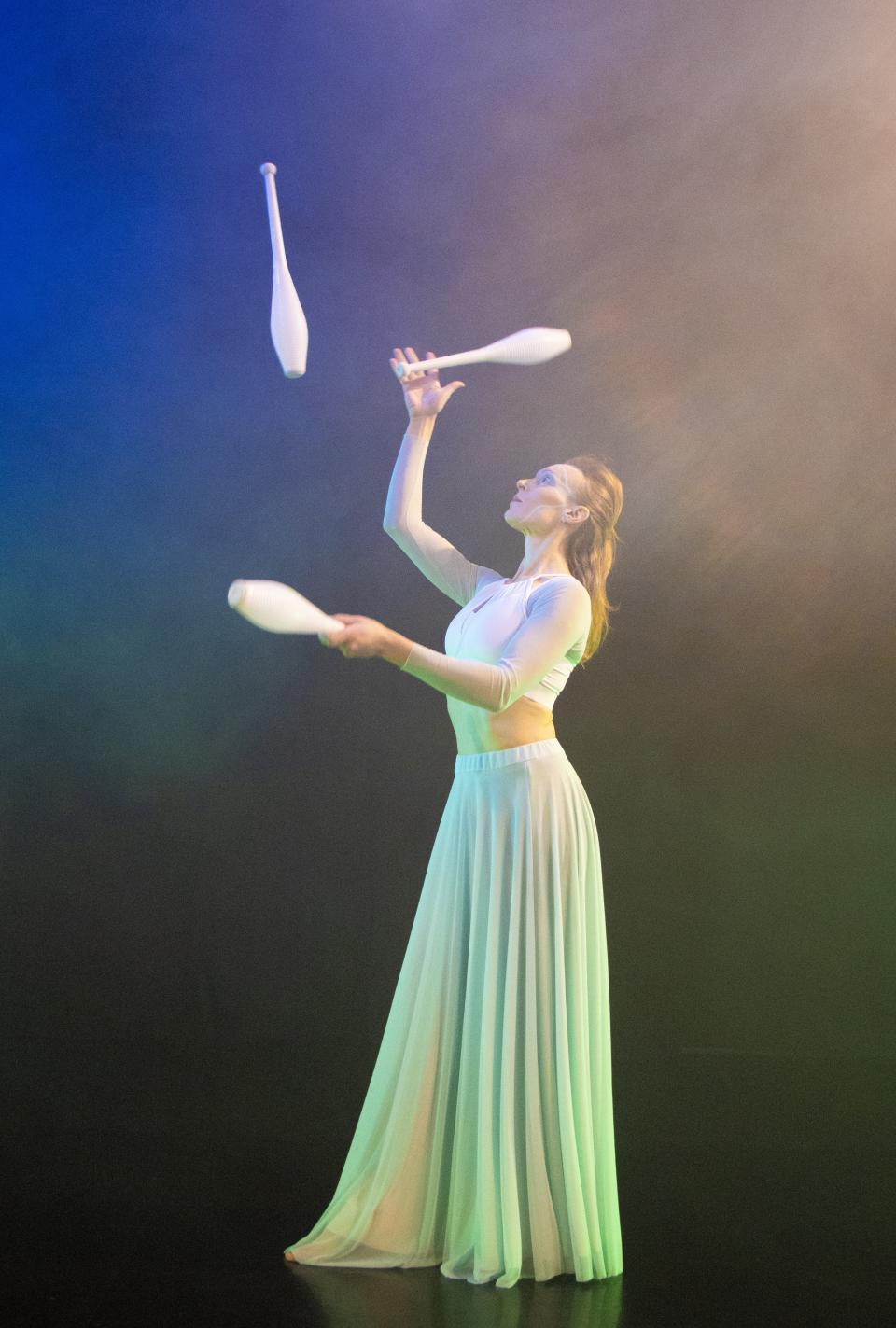 Jonglageshow: Keulen, Bälle, Ringe, alles fliegt! Verena zeigt anspruchsvolle Technik zu geschmeidigen Moves in ihren Shows "The Phoenix", "Amazement", "Bellydance Juggling" oder "Misty - the Pokemon Juggler" (Dauer der Shows 5-15 Minuten)