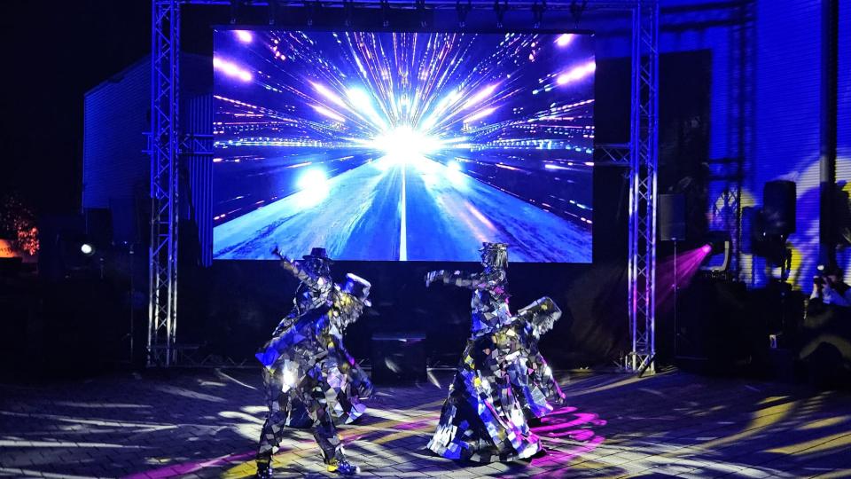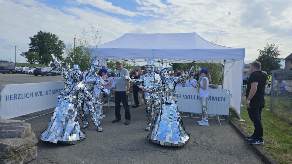 Walk Act buchen für Stadtfest, Firmenfeier, Netzwerk-Treffen, Eröffnungsfeier oder Einkaufscenter. Mosiak steht für farbige, verspiegelte Kunstfiguren oder lebende Statuen die jeder Veranstaltung eine starke Visualisierung für Zukunft, Kunst, Geschichte und Design geben. Sie stehen am Eingang und heißen Ihre Gäste willkommen. Sie sind Begegnungs- und Begrüßungsfiguren und bieten außerdem Gelegenheit für Fotos und Selfies.