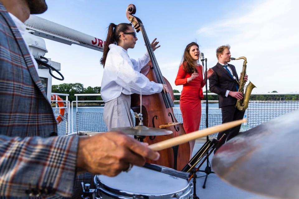 Die einen schmunzeln beim vorübergehen, die anderen schwingen ihre Beine im Takt der Musik und wieder andere setzten sich auf eines der Holzpodeste und hören begeistert der Musik zu. Ein Samstag Nachmittag am Berliner Weichselplatz. Wenn die Weichsel Sharks aus dem Landwehrkanal steigen und auf ihrem Stammplatz spielen, lässt das kein Herz unberührt. Wir lieben die Musik des American Song Books : Jazz und Swing Lieder, die schon seit über 80 Jahren Geschichten von Liebe, Hoffnung & Weltschmerz erzählen, ohne dabei zum Cliché zu werden.