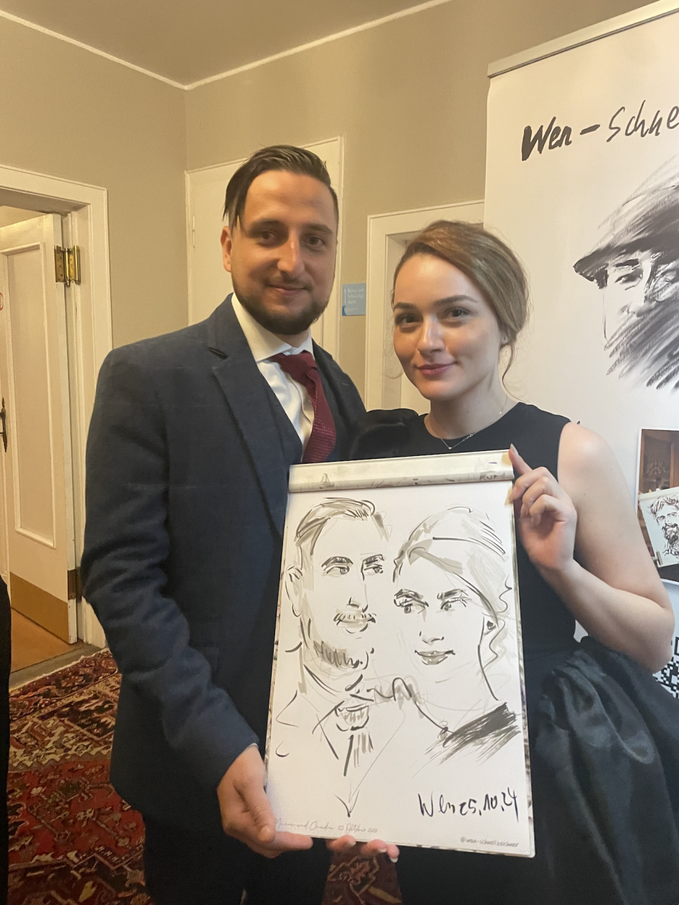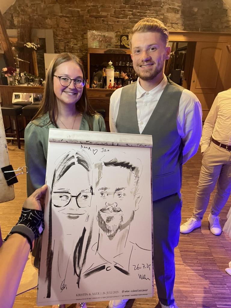 Ich porträtiere Ihre Gäste vor Ort – schnell, charmant und mit künstlerischem Feingefühl.