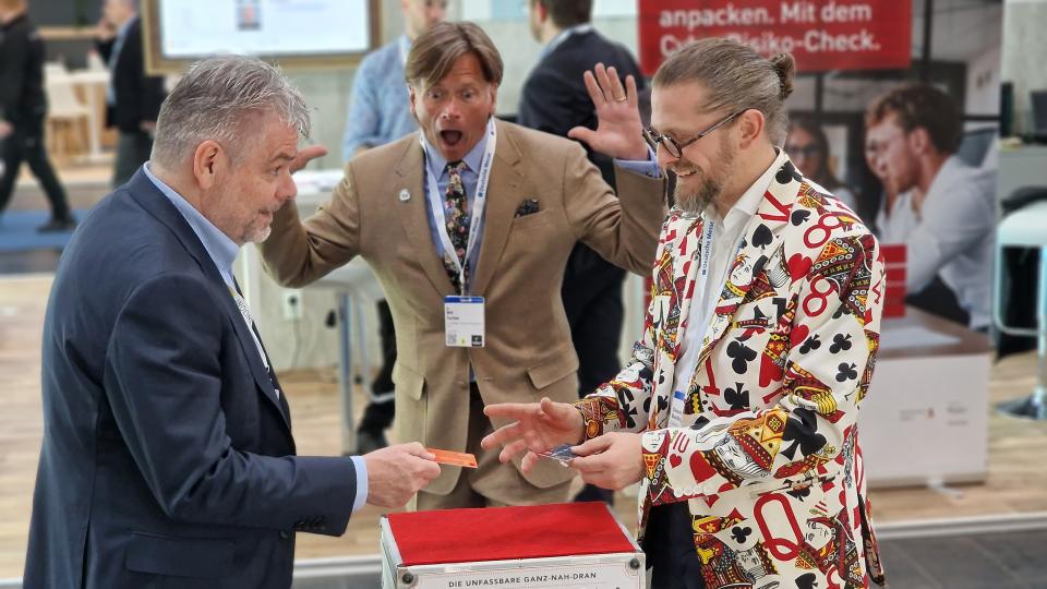 Ob als Publikumsmagnet mit einem gekonnt und humorvoll präsentierten »Hütchenspiel« oder als magischer Presentator und Moderator Ihrer Produkte und Dienstleistungen: Zauberer Simabu unterstützt Sie gern dabei, Ihrem Messestand noch etwas mehr »Action« zu verleihen.