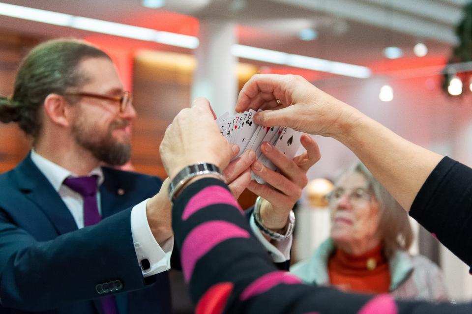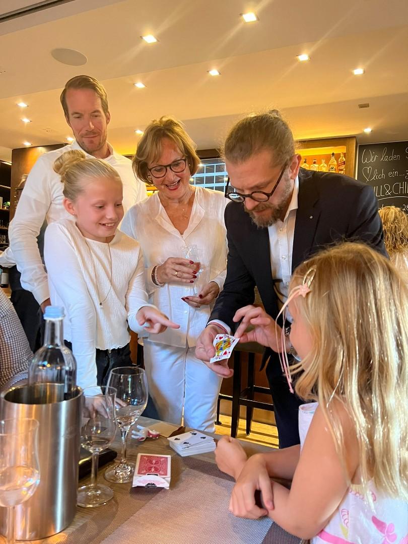 Die Close-Up-Zauberei kann entweder als WalkingAct direkt zwischen den Gästen oder an den Tischen eingesetzt werden. In beiden Fällen erleben die Zuschauer die Magie ganz aus der Nähe und werden auf charmante Art direkt in das zauberhafte Geschehen mit einbezogen.
